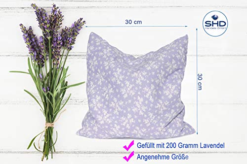 💜 Das Kissen ist mit 100 % schonend, getrockneten LAVENDELBLÜTEN gefüllt. Der Bezug ist aufgebraucht 100% reiner Baumwolle und die Nähte sind überaus hochwertig verarbeitet. Die angenehme Größe von 30×30 cm ist vielseitig einsetzbar z.B.: im Bett, Couch ..