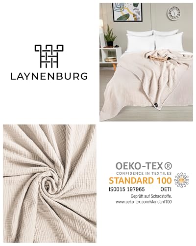 LAYNENBURG Premium Musselin Tagesdecke 150×200 cm – 100% Baumwolle – extraweiche, leichte Sommerdecke als Kuscheldecke, Bett-Überwurf, Baumwolldecke, Couch-Überwurf – warme Sofa-Decke (Beige)