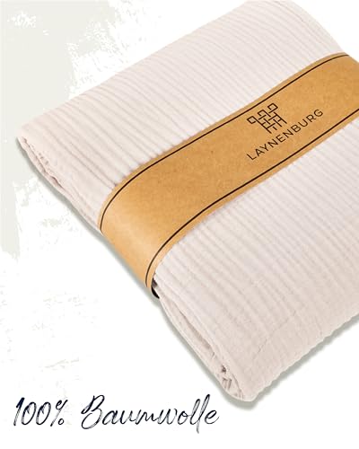 LAYNENBURG Premium Musselin Tagesdecke 180x220cm, 180x220cm & 220x240cm – 100% Baumwolle – extraweiche Baumwolldecke denn Kuscheldecke, Bett-Überwurf, Sofa-Überwurf, Couch-Überwurf – warme Sofa-Decke