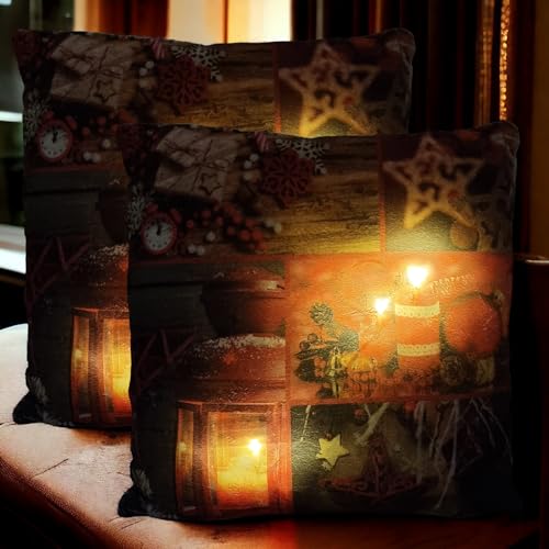 Die Weihnachtskissen sind mit bezaubernden Weihnachts-Motiv gestaltet, das für eine festliche Atmosphäre sorgt. Die Kissen verfügen über 3 warmweiße LEDs im Bezug, die ein sicheres und gemütliches Licht erzeugen, nicht mehr da ohne offene Flamme.