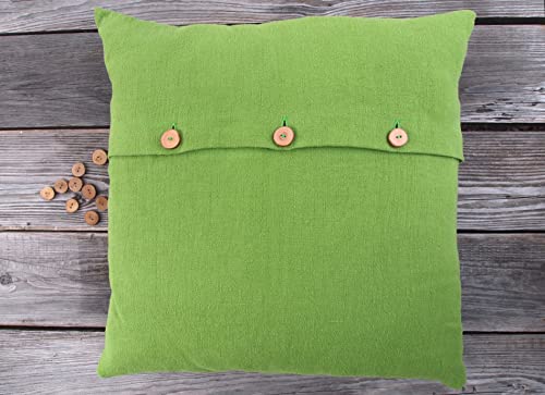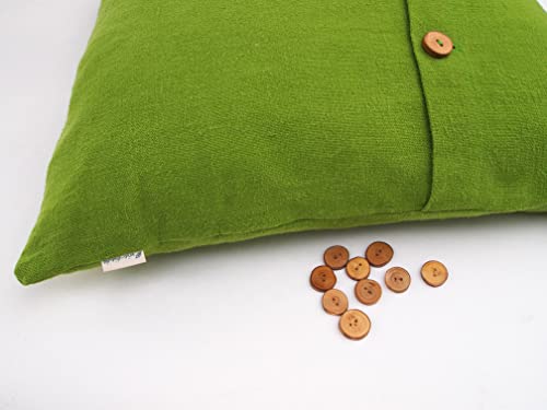 Eine Kissenhülle sämtliche schwerem, mittel grünem Leinen in verschiedenen Größen, die an diesem Ort ausgewählt werden können. Es ist ein leuchtendes, fröhliches Grün, man kann es aka wie Frühlings- oder Maigrün bezeichnet. Die Knopfleiste bloß ist massiv dekorativ mit Holzknöpfen sämtliche Obstbaum Ästen.