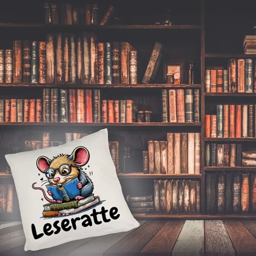 Dieses gemütliche Kissen trägt den stolzen Spruch Leseratte und verleiht jeder Leseecke das gewisse Etwas. Ob beim Studieren schwerer Literatur oder beim Schmökern vor dem Schlafengehen, unser literarisches Nagetier steht dir zur Seite und spendet dir Trost und Kissenkraft!