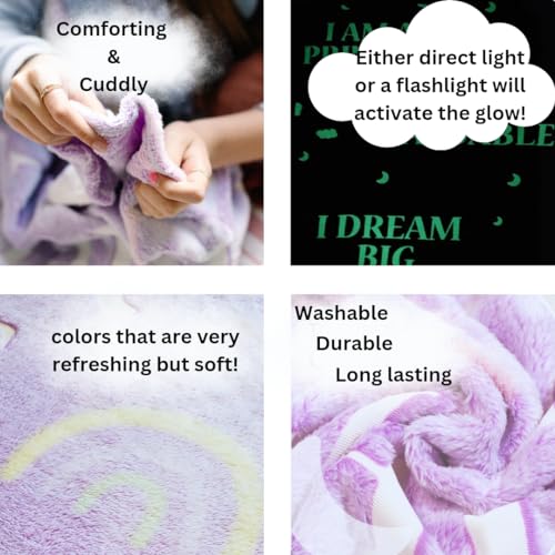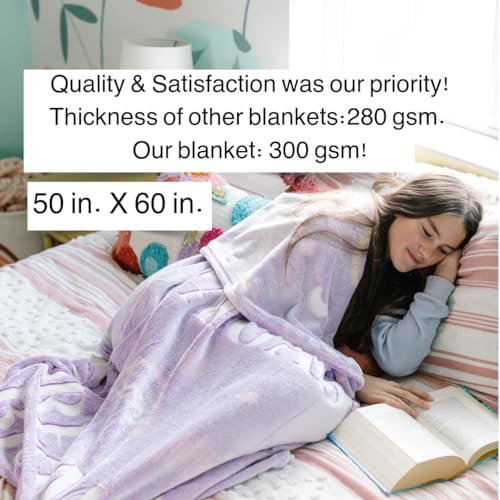 Im Dunkeln leuchtende Decke: Wickeln Sie Ihre kleine Prinzessin in die fesselnde Welt unserer im Dunkeln leuchtenden Mädchendecke, eine charmante Zusatz für jedes Mädchenzimmer. Unsere auffällige 127 x 152,4 cm lila Decke ist eine perfekte Decke für Mädchen im Alter von 5–16 Jahren.