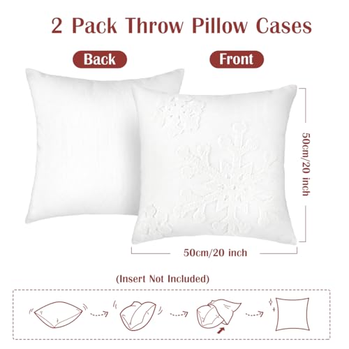 Lewondr Kissenbezug, 2 Pack Quadratische Dekokissen Hülle mit Schneeflockenmuster, Weihnachten Dekorative Zierkissenbezüge für Sofa Auto Home Schlafzimmer, 50 x 50 cm – Weiß