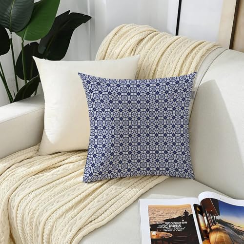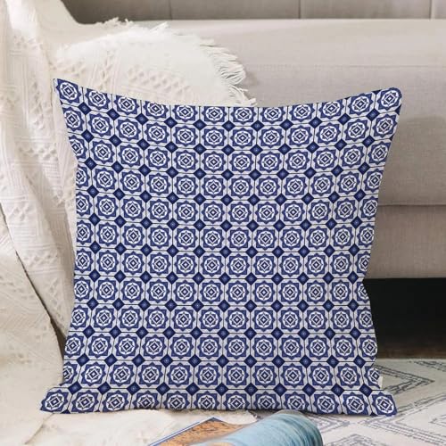 LEZUAHSH Kissenbezüge Couchkissen Modern Kuschelig Dekokissen Kissenhülle Sofakissen Zierkissen Wohnzimmer Bett,Niederländisches, geometrisches Muster im Delft-Stil mit Rauten und Se,30x30cm
