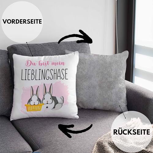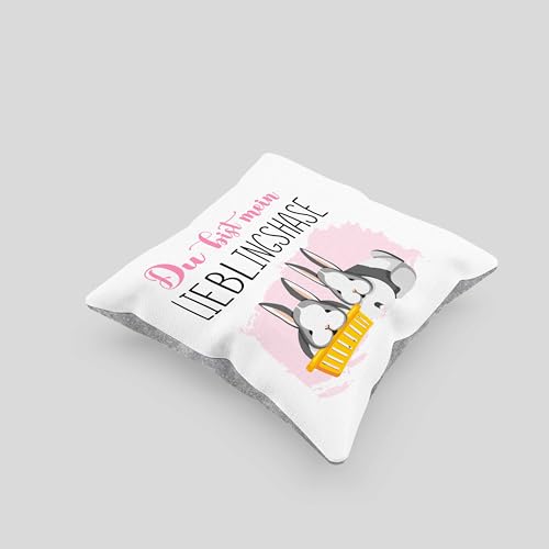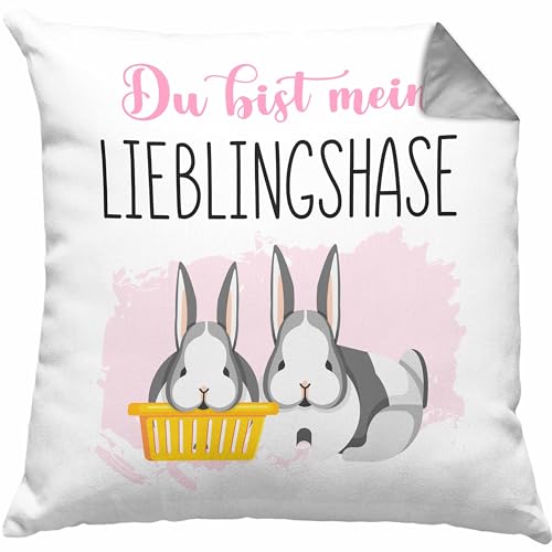 Lieblingshase Geschenk Kissen mit Füllung 40×40 Liebste Person Beste Freundin Bester Freund Geschenk (Grau)