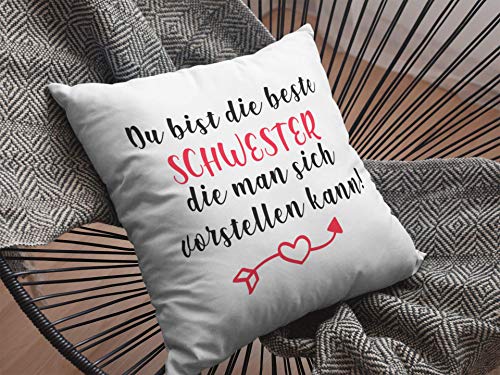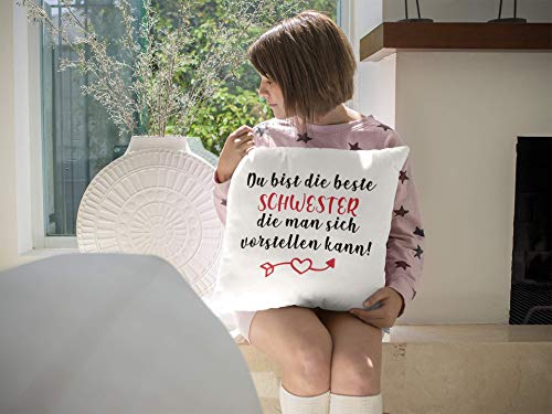 Das Kissen ist ein optimales Geschenk an Stelle die Schwester,