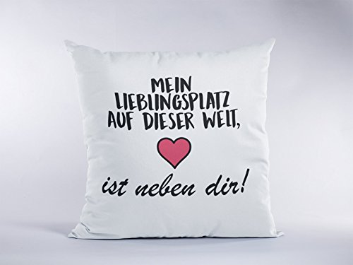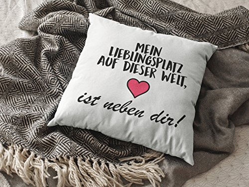 LIEBTASTISCH Liebes Kissenbezug mit Spruch “Mein Lieblingsplatz auf Dieser Welt…“ – Kissen-Hülle – Deko-Kissen – weiß 40cm x 40cm – Liebe – Schatz – Beziehung