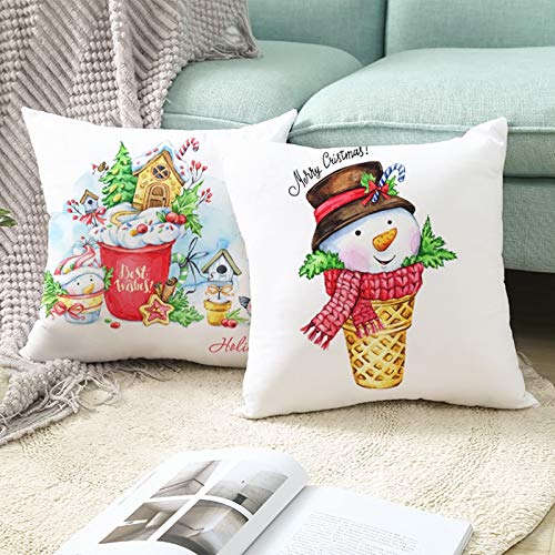 Lieson Couchkissen Weihnachten, Kissenhülle Dekokissen Zierkissenbezüge Weihnachten 45×45 Weiß Grün Rot Merry Christmas Weihnachtsgeschenktüte Hund, Polyester