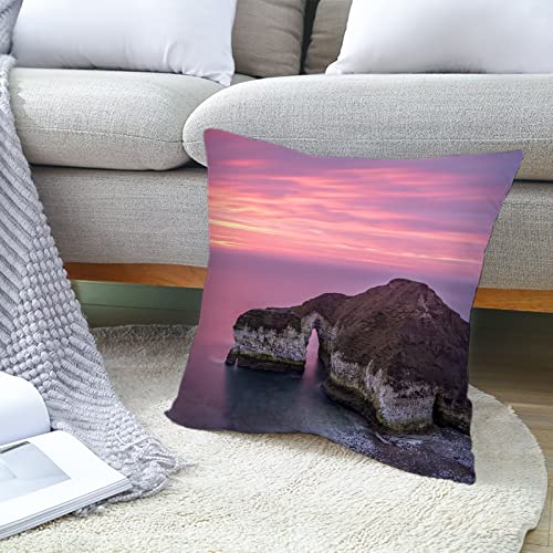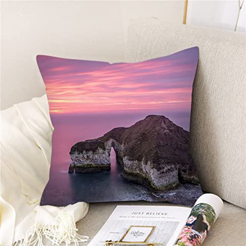 Lieson Dekokissen 45 x 45 cm 4er Set, Dekokissenhülle Polyester Sonnenuntergang Felsen Sofakissen Kissenbezüge Dekoration Outdoor für Schlafzimmer, Sofa, Stuhl, Bett, Garten, Hell Lila Rosa