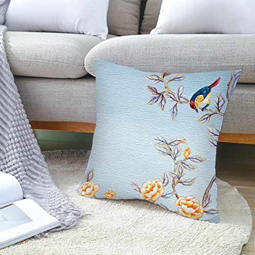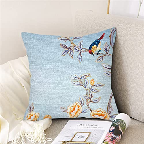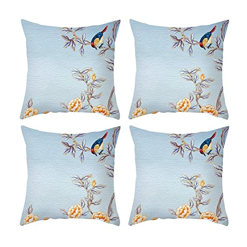 Lieson Dekokissen Bezug 40×40 4er Set, Kissenhülle Polyester Blumen Vogel Muster Kissenbezug Sofakissen Kissenbezüge für Sofa Gartenbett Couch Kissen, Hellblau