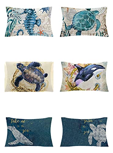 Lieson Dekokissen Kinderzimmer, Kissenbezug 30×50 1 Stück Kissenbezüge Blau Meeresfisch Leuchtturm Schiff, Polyester