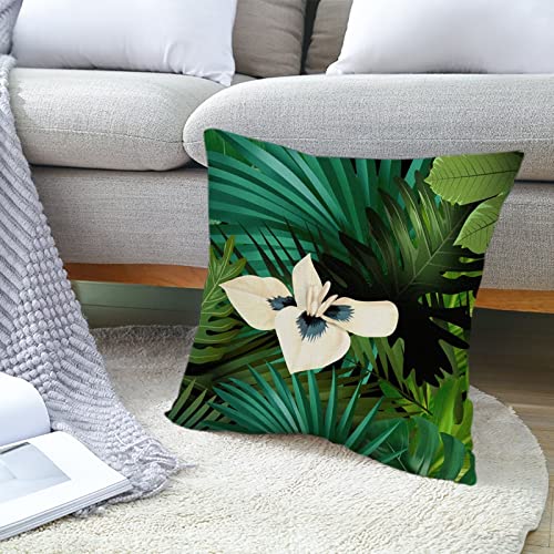 Lieson Kissenhülle Weihnachten 40×40 4er Set, Sofakissen Leinen Tropisch Blatt Blumenmuster Kissenbezug Dekokissen Kissenbezüge für Sofa Gartenbett Couch Kissen, Blau Grün