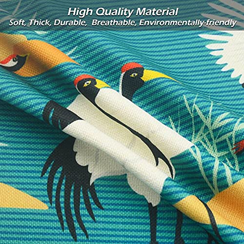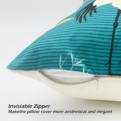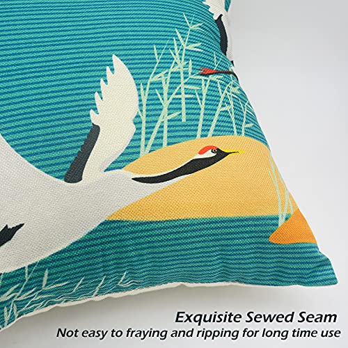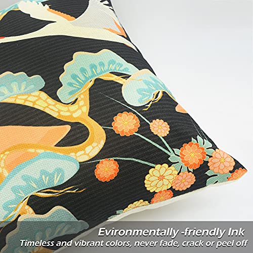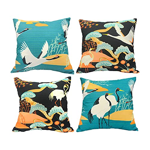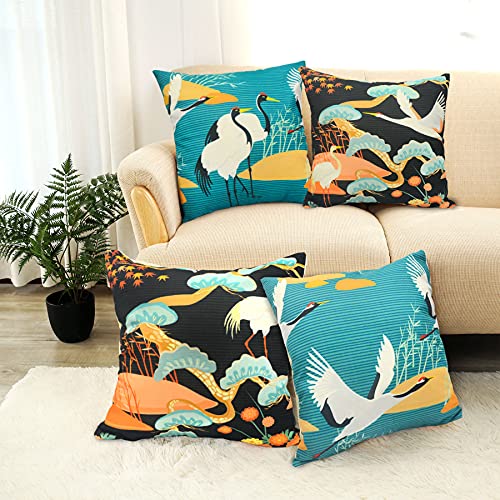 LIGICKY 4er-Set Kissenbezug Japanischen Stil Baumwolle Leinen Dekorative Kissenhülle Weißer Kranich Bedruckter Weich Kissenbezüge für Sofa Couch Schlafzimmer Wohnzimmer Büro 45 x 45 cm