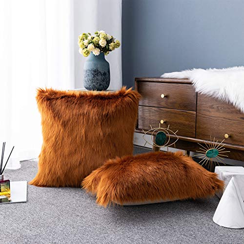 LIGICKY Soft Künstlich Pelz Throw Kissenbezüge Solid Dekorative Rechteck Reißverschluss Kissen Kehricht Kunstfell Dekokissen Kehricht für Sofa Schlafzimmer Auto, 40 x 40 cm Braun