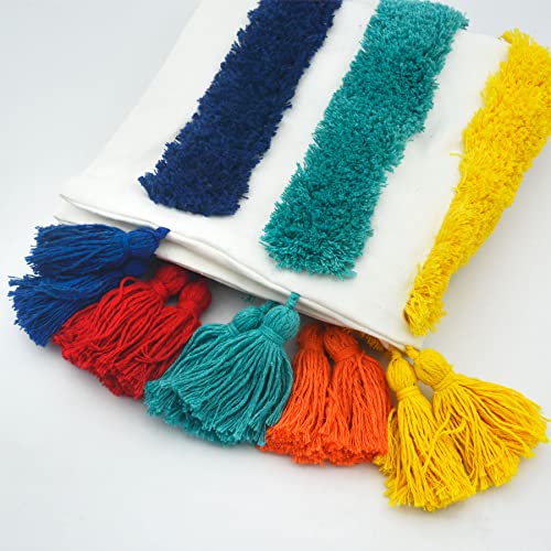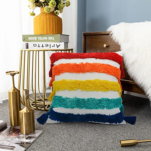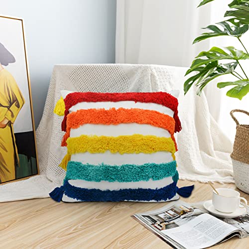 LIGICKY Dekorativer Boho-Regenbogen-Überwurf-Kissenbezug, handgewebter Kissenbezug mit Quasten für Couch, Sofa, Bett, Wohnzimmer