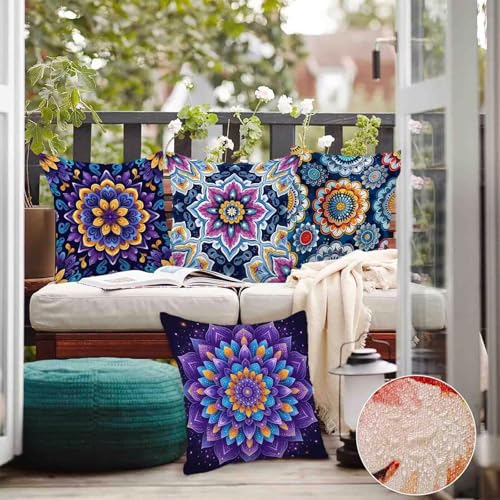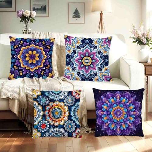 Lila Kissenbezug 75×75 4er Set, Outdoor Kissen Mandala Sofakissen Weicher mit Verstecktem Reißverschluss, Beidseitiger Druck Dekokissen für Schlafzimmer Balkon Zimmer Deko Wohnzimmer -hjw2505Z9