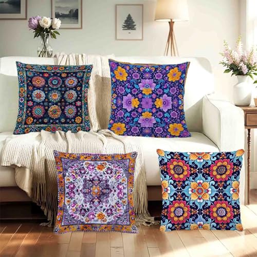 【DOUBLE-SIDED PATTERN】New cushion covers set of 4, size 32x32inches (80x80cm) without filling or lining. Our cushion covers are printed on both sides, so you can place them as you like without having to find the patterned side to decorate, which is more convenient