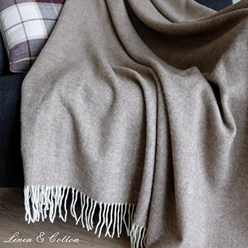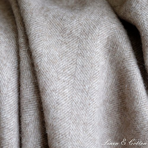 Linen & Cotton Klassische Decke Wolldecke Merino Wolle Wohndecke Kuscheldecke STONEWOLD mit Fischgrätenmuster – 100% Merinowolle, Braun/Natur (140 x 200 cm), Sofadecke Tagesdecke Überwurf Plaid Sofa