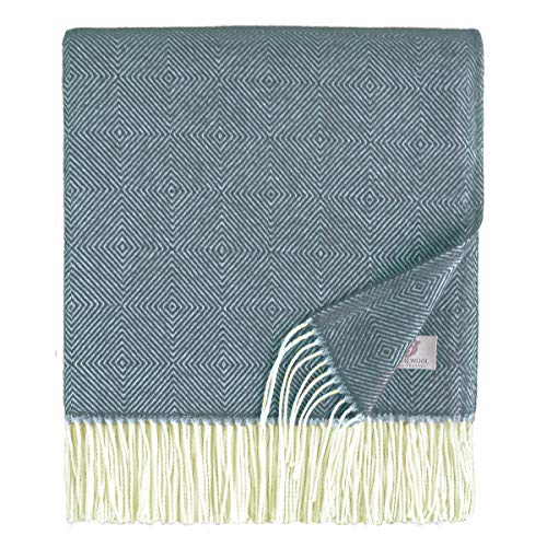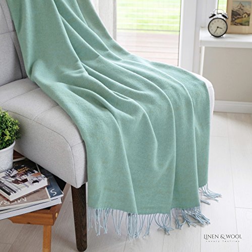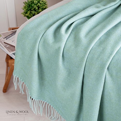 Linen & Cotton Klassische Decke Wolldecke Merino Wolle Wohndecke Kuscheldecke STONEWOLD mit Fischgrätenmuster – 100% Merinowolle, Türkis/Enteei Blau (140 x 200 cm), Sofadecke Tagesdecke Überwurf Sofa