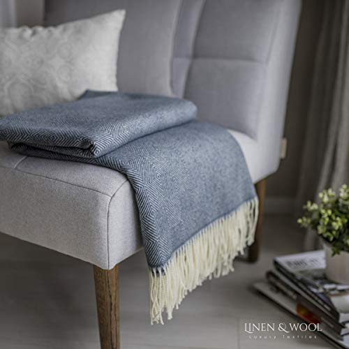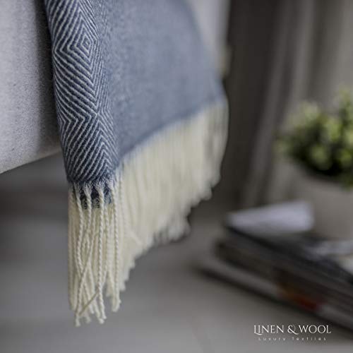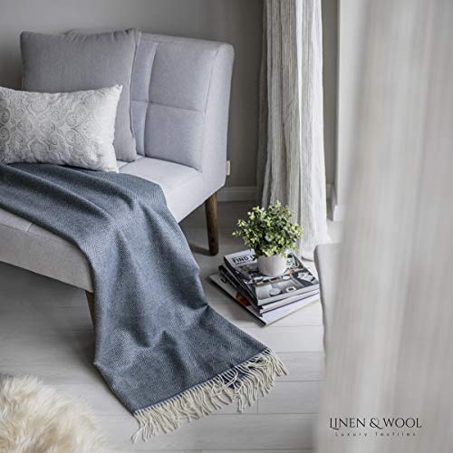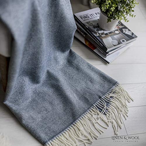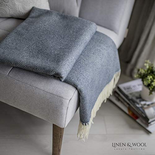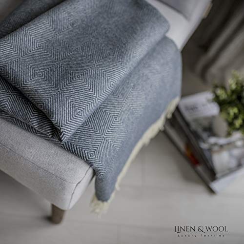 Linen & Cotton Luxus Stilvolle Decke Merino, Tagesdecke, Kuscheldecke, Wolldecke DIAMOND