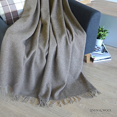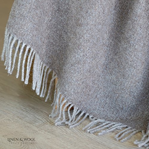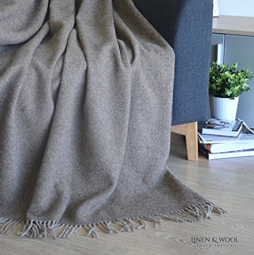 COLUMBUS Luxury alleinig soft and elegant sofa blanket for sofa bed sofa blanket 100% neuseeland wool material 140x200cm 55 inch x 80 inch with fransen Made in EU, Linen & Cotton Ltd