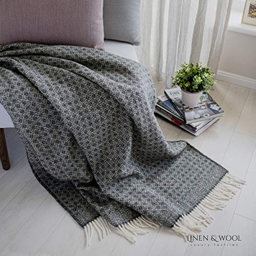 Linen & Cotton Warme Decke Wolldecke Wohndecke Kuscheldecke Paris mit Rautenmuster – 100% Reine Neuseeland Wolle…