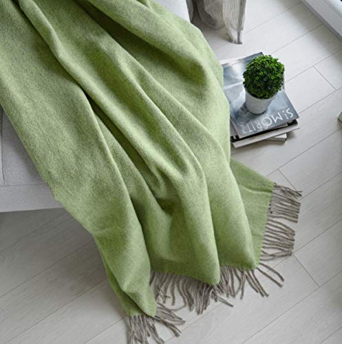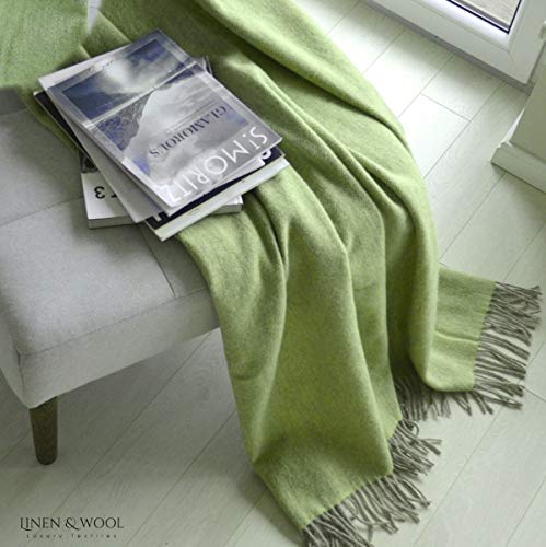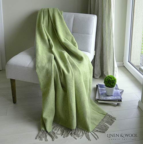 Linen & Cotton Weiche Warme Decke Wolldecke Wohndecke Kuscheldecke Columbus – 100% Reine Neuseeland Wolle, Beige Grün (140 x 200 cm) Tagesdecke Sofadecke Überwurf Blanket Plaid Winter Sofa Schurwolle