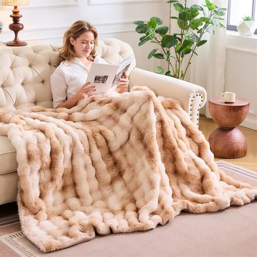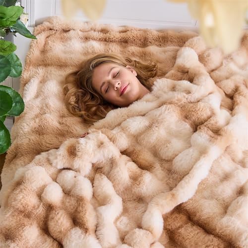 🎁【Weicher & Kuscheliger Stoff】Kuscheldecke besteht aus hochwertigem Mikrofaser-Polyester, das sich anfühlt wie ein Abschnitt Wolke, das im Himmel schwebt. Decke hat ein wendbares Design mit AB Seiten – die A-Seite ist aus Kaninchenplüsch Kunstfell und die B-Seite aus Flanell. Die flauschig Decken sind leicht, weich, die für den Einsatz auf der Couch, Bett zu Hause geeignet ist.