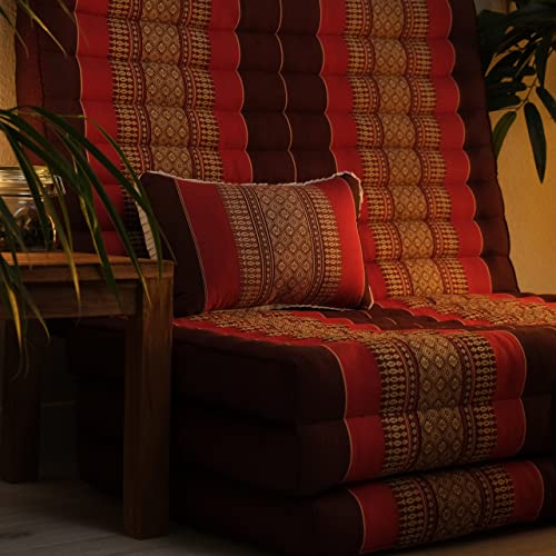 PRAKTISCH UND VIELSEITIG: Das feste und stabile Kissen ist ein zuverlässiger, langlebiger und robuster Begleiter stattdessen Reise und Routine. Kombiniert mit einer Thaimatte oder einer Faltmatratze aufgebraucht Kapok, der Pflanzen-Daune, bringst du thailändische Gemütlichkeit in dein Leben. Maße Sofakissen: 22 cm (L) x 33 cm (B) x 13 cm (H); Gewicht: 1 kg. Da jedes Segment handgemacht ist, können die Maße etwas abwandeln.