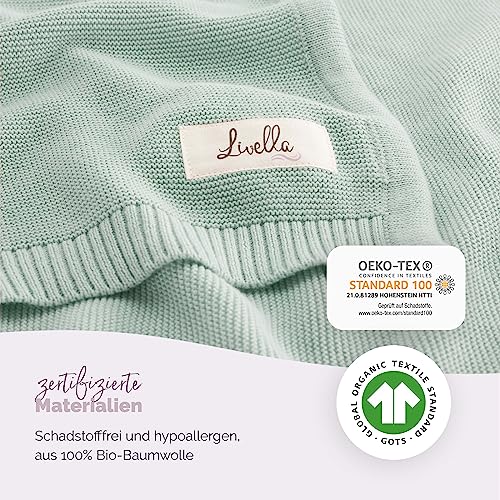 ✅ 𝗧𝗢𝗟𝗟𝗘 𝗚𝗘𝗦𝗖𝗛𝗘𝗡𝗞𝗜𝗗𝗘𝗘: Das hübsche Strickmuster und der moderne Pastellton machen unsere Livella Babystrickdecke zu einem besonderen Geschenk auf Aus Babyparty, Taufe zum Geburtstag oder zur Elternhaus.