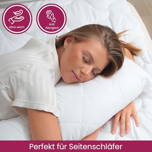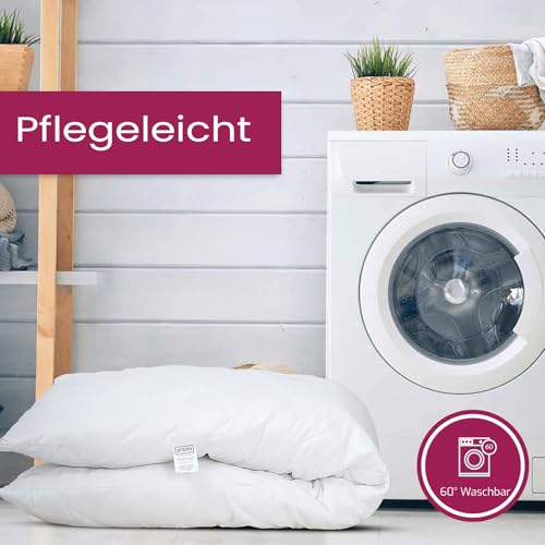 WASCHBAR & TROCKNERGEEIGNET: Livessa Seitenschläferkissen ist bei 30°C waschbar. Der Kissenbezug ist bis 60°C waschbar, trocknergeeignet und bügelleicht. Bitte nicht bleichen.