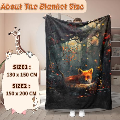 LLTTEER Fuchs Kuscheldecke für Kinder, Flanell Decke,Kinderdecke 3D Fuchs Muster Flauschige Plüsch Decke,Wohndecke Fleecedecke TV Decken für Bett Sofa (Fox 02, 150 x 200 cm)