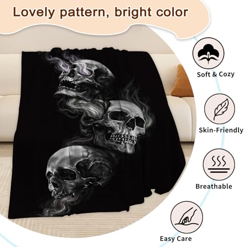 Kuscheldecke Totenkopf — 3D Drucken Totenkopf Kuscheldecken um Ihr Zimmer zu dekorieren, anti-Pilling-Flanellmaterial, Die sauberen Stiche erhöhen die feste Verbindung an der Naht und haben eine schönere Strukturfestigkeit, es ermöglicht Ihnen ein perfektes Erlebnis.