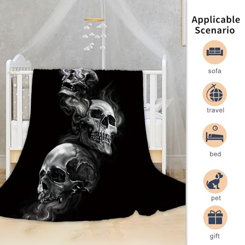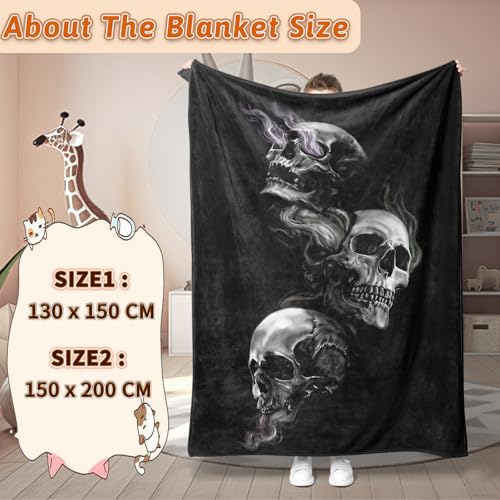 Hochwertiges Flanellmaterial — Die Totenkopf-Fleecedecke ist sämtliche hochwertigem Flanell, einlagig verdickt, weich und bequem, sonderlich warm.Sehen Sie im Wohnzimmer fern, plaudern Sie mit Freunden oder spielen Sie sogar mit den Kindern, buckeln Sie eine warme Atmo.