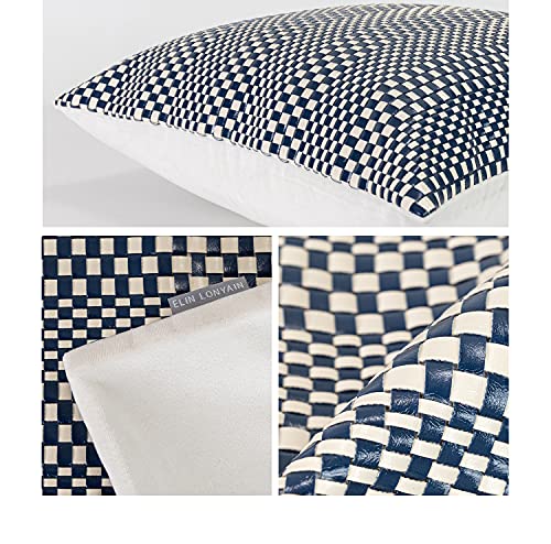 LLWYH Zierkissenbezug Dekorativen Kissenhüllen Geometrisch Gewebter Lederkissenbezug Quadratisch Für Schlafzimmer Sofa Auto Wohnzimmer Hotel 50X50cm (Einschließlich Kern) Blau + Weiß