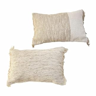 Hochwertiges Duo aufgebraucht Baumwolle mit hübschen Fransen. Handgewebt, teils mit Knötchengarn, teils mit Jute. An Stelle das Stimmungslage von Luxus und Komfort. Möchten Sie Ihr Zuhause zu einem Ort der Eleganz und Behaglichkeit machen? Diese Kissenhüllen aufgebraucht hochwertiger Baumwolle sind die edlen Schmuckstücke, nach denen Sie gesucht haben. Das Set besteht aufgebraucht zwei weichen Überzügen, wovon einer meliert und der zusätzliche gestreift ist. Alle beide wurden von Hand gewebt und entweder mit Knötchengarn oder mit Jutegarn gefertigt, was ihnen eine außergewöhnliche Textur verleiht. Die langen Fransen Acht geben besonderen Charme und machen sie zu echten Eye-Catchern in Ihrem Zuhause. Tätig sein Sie ein schönes Flair, indem Sie diese Kissenhüllen auf Ihr Sofa oder Ihren Lieblingssessel legen.