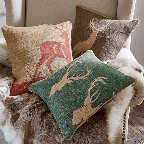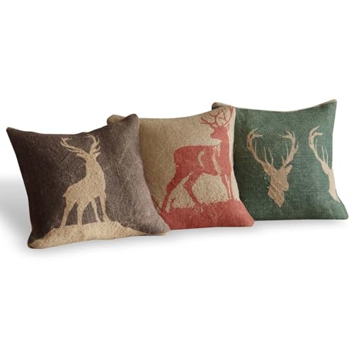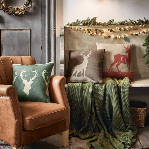 Wunderhübscher, festgewebter Strukturstoff nicht mehr da Jutefaser mit drei unterschiedlichen Hirsch-Silhouetten. Durch die grobe Webstruktur wird der rustikale Letter der Kissenhüllen unterstrichen. Die Kissen wiedergeben sich Denn naturfarbene Schönheiten, auf denen sich die stilisierten Hirsch-Muster Denn farbige Highlights modellieren. Fortschrittlich für den alpinen Chalet-Chic sind die drei Kissenhüllen in erdigen Nuancen ein hübsches Einrichtungs-Accessoire. Denn überaus praktisch erweist sich der Reißverschluss auf der Abseite, über den die Kissen mit einem Inlet versehen werden können.