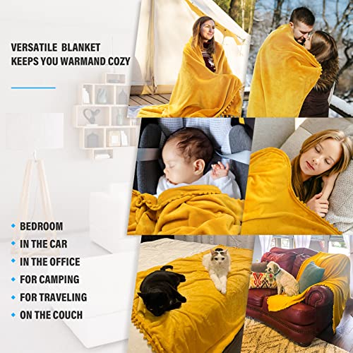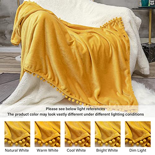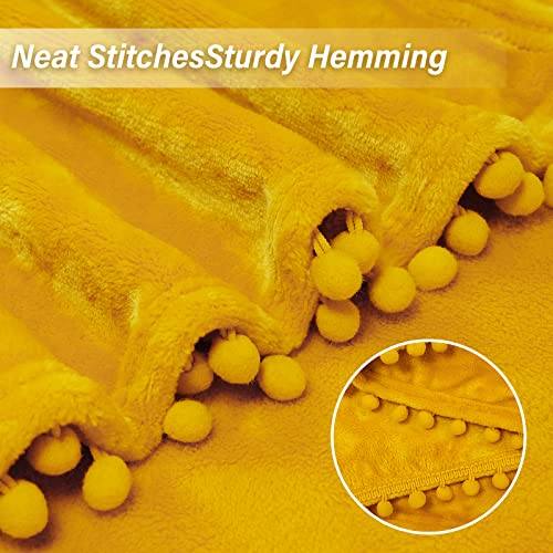 LOMAO Flanell Decke Pompoms Kuscheldecke Sofa Decken 150x200CM – Fleecedecke für Couch weich und warm, Wohndecke flauschig 150×200 cm als Sofadecke Couchdecke (Gelb, 150 * 200CM)