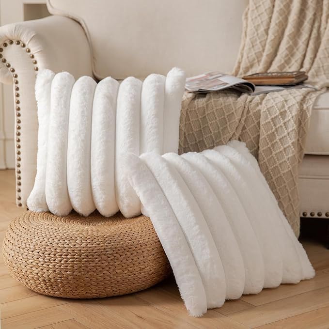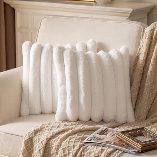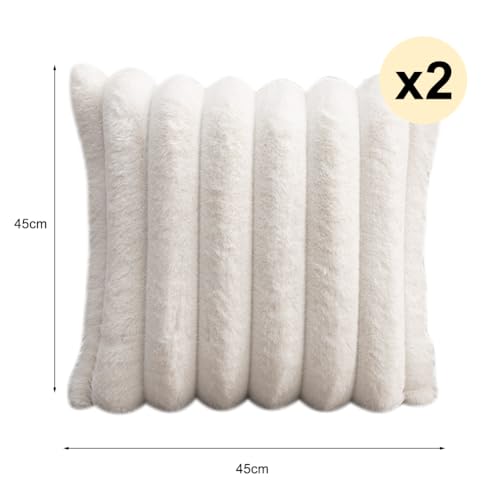 LOMUG 2er Set Plüsch Samt Kissenbezüge, Weiche Künstliche Pelz Dekorativ Sofa Zierkissenbezüge, Plüsch Kissenbezüge, Dekokissen Kissenhülle für Couch Schlafzimmer Zuhause Auto Dekor(45x45cm, Weiß)