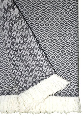 Lorenzo Cana – Luxus Kaschmirdecke, 100% Kaschmir, flauschig weiche Wohndecke,grau weiß, Decke handgewebt Sofadecke Wolldecke – 96175