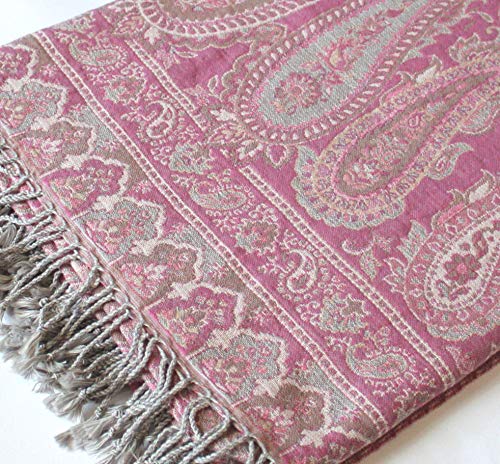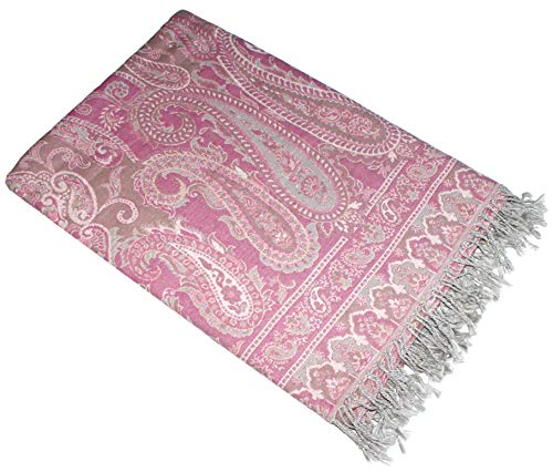 Die Decke ist aufwändig jacquardgewebt mit opulentem Paisleymuster und wärmt dank der edlen Naturfaser auf angenehme Weise.