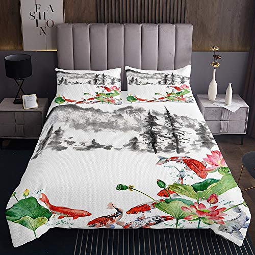 ✿✿ WAS SIE ERHALTEN KÖNNEN: 1 mittelgroße Tagesdecke 220 x 240 + 2 Kissenbezüge 80 x 80. Übergroß – Hervorragende Sicherheiten an den Seiten des Bettes (Tagesdecke und Shams sind NUR auf der Vorderseite aufgedruckt.)