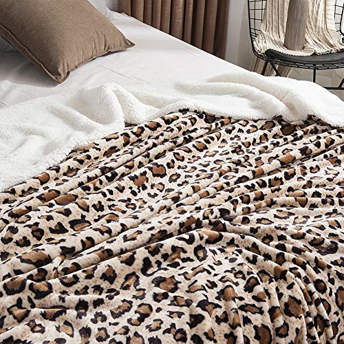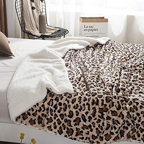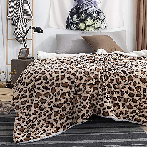 【▶Leopardmuster Tagesdecke】Sherpa decke mit Leopard Muster.Diese Fleece-Decke verleiht Ihrem Wohnzimmer oder Schlafzimmer einen klassischen, stilvollen Touch.geeignet für hält Sie warm genug im Frühling, Herbst und Winter