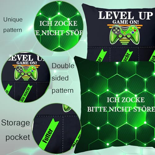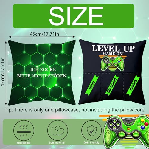 【Weich und langlebig】Der Reißverschluss des Kissenbezugs ist unsichtbar, Einfache Pflege und maschinenwaschbar, man kann ihn leicht öffnen und konkludieren, Die Kissenbezüge sind aus hochwertigem Polyester, weich, sehr klar und umtriebig, seidig und langlebig. Durch die weiche Haptik fühlen Sie sich bei der Verwendung wohler. Dieses geburtstagsgeschenke für jungs kinder ist mit wundervollen Spielmustern und interessanten Notieren auf beiden Seiten bedruckt