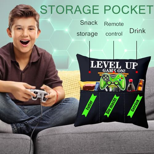 【Lustiges Design】Unsere lustige männer kissenbezug mit 3 Taschen, Sie bieten Platz für Fernbedienungen, Smartphones, Lesebrillen oder andere kleine Gegenstände. Es hilft sintemalen, kleine Gegenstände, die Sie aber und abermal ableben, geordnet aufzubewahren, sodass Sie sie bei Gebrauch leichter wiederfinden und verstauen können. Die Kissenbezüge mit Videospiel-Thema haben ausgefallene und coole Spielmuster die eine Spielatmosphäre für Ihr Haus/Schlafzimmer schafft