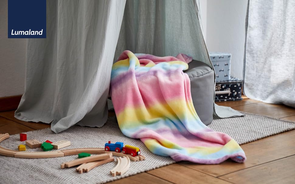 Lumaland Kuscheldecke für Kinder & Babys | Kinderdecke in der Größe 150 x 180 cm | Multifunktionelle Fleecedecke im Haus & im Kinderzimmer | Für Jungen und Mädchen aus Mikrofaser [Bunte Wohndecke]