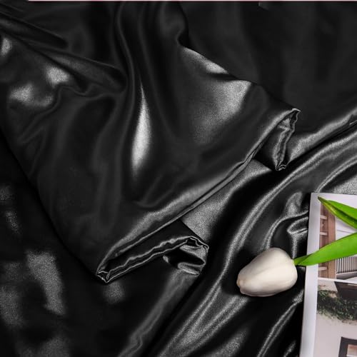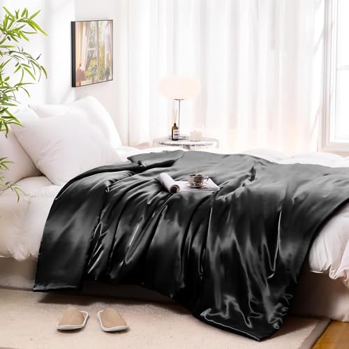 Luowei Satin Decke 220 x 240 cm Schwarz Kühlende Leicht zu tragen Seide Decke Luxuriös Komfortabel und AtmungsaktivKann Körper Kühl Halten für Sommer Nachtschweiß und Tierhaarausfall zu Hause