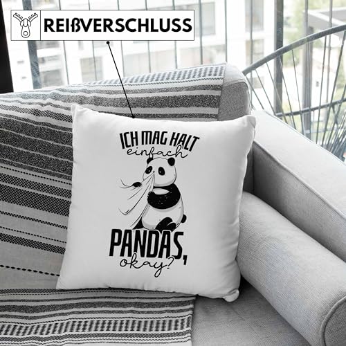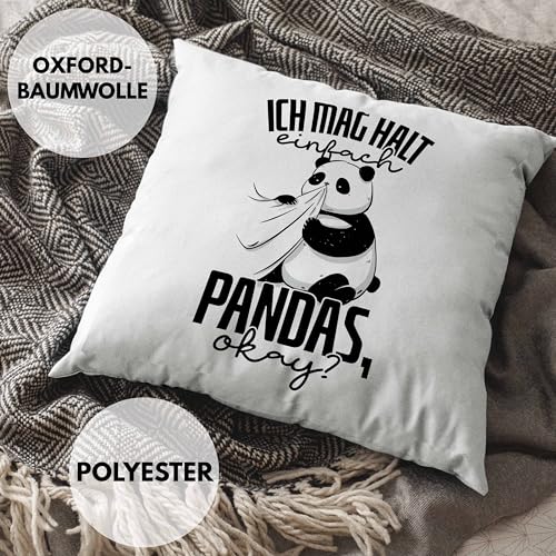 Lustige Panda Kissen mit Füllung 40×40 Panda-Motiv Geschenk Tierwohlhaber Geschenkidee Panda Fans (Grau)