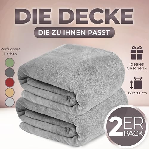 luxoon Fleecedecke Flauschig Warm Winter – Kuscheldecke für Gemütliche Winterabende, Ultra Weich und Wärmend, Ideal für Sofa und Bett, 100% Polyester, Farbe 2er Pack 150x200cm, Grau